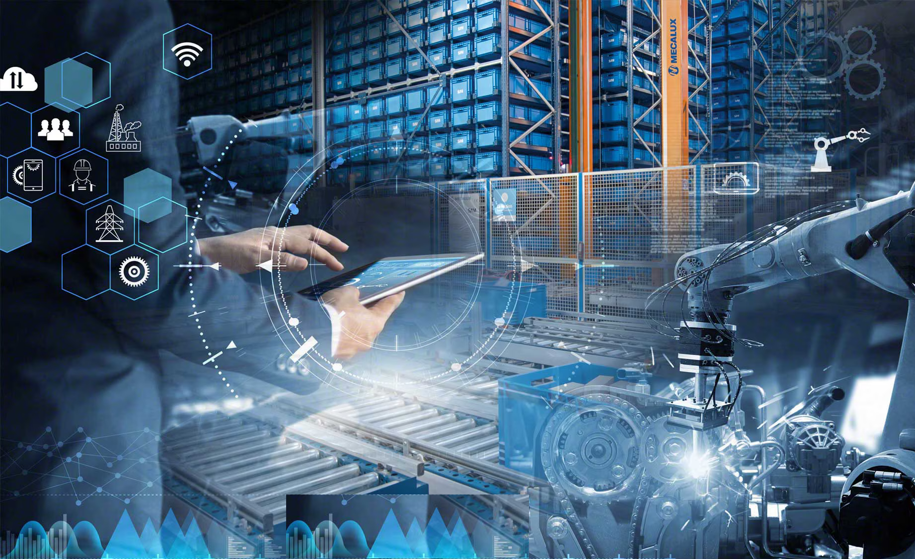 Systèmes de gestion d’entrepôt (WMS), Solutions de traçabilité RFID et IoT, Terminaux mobiles industriels, Imprimantes industrielles et étiquetage logistique, Systèmes de suivi de flotte (GPS tracking), Solutions d’automatisation d’entrepôt.